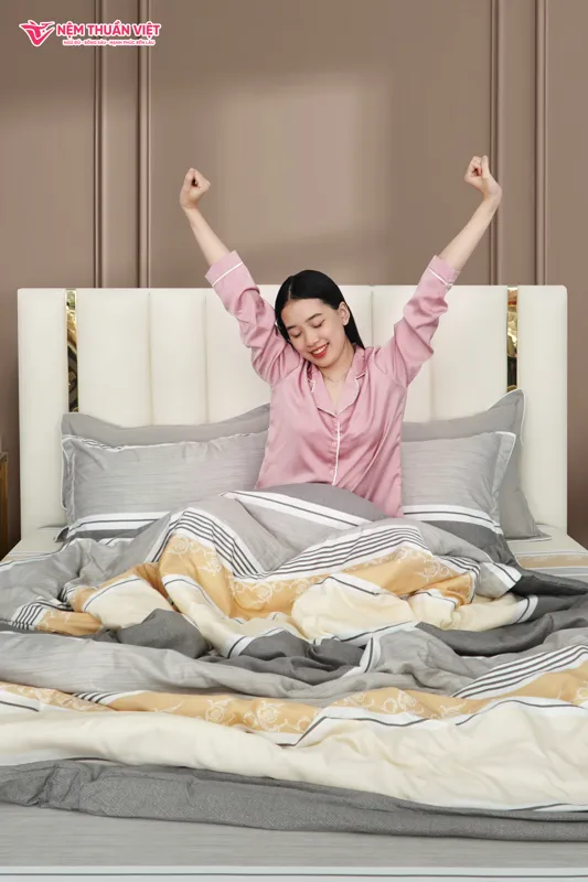 Mịn màng từ cái chạm tay, cảm nhận hết sự êm ái mát lạnh đặc biệt từ sợi vải. BST chăn ga Thuần Việt lấy cảm hứng từ những gam màu nhẹ nhàng kết hợp với họa tiết bắt mắt, tạo điểm nhấn cho căn phòng, giúp không gian phòng ngủ của bạn trở nên tươi mát, trong lành.